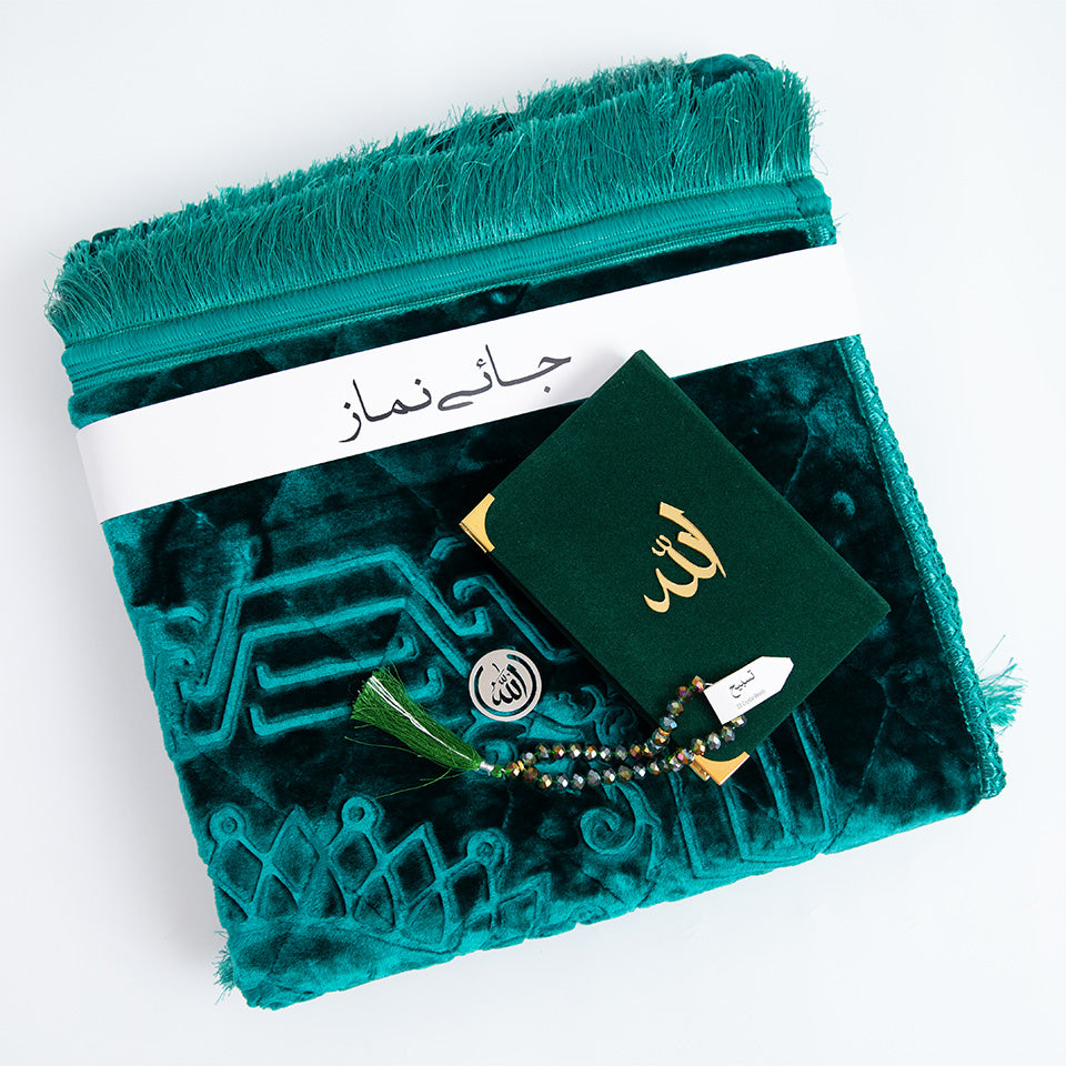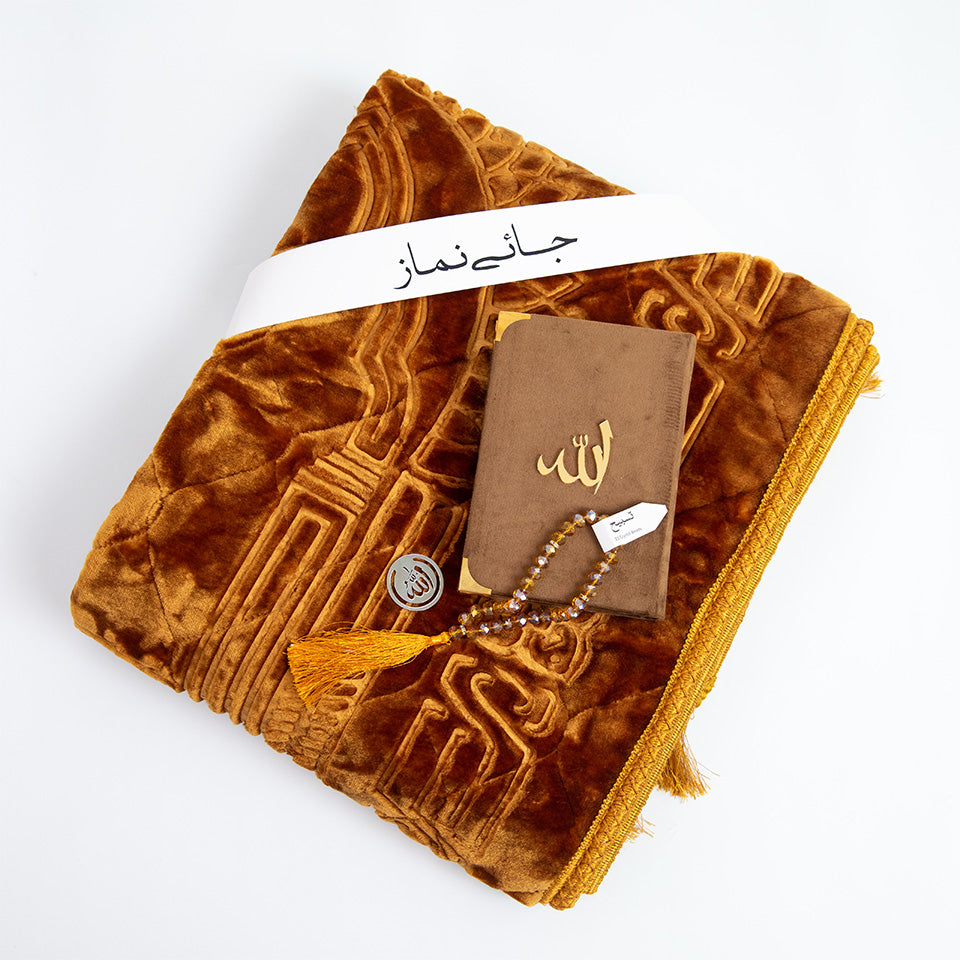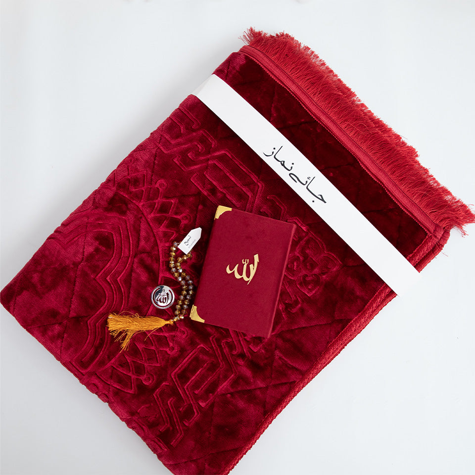 A Janamaz: A plush, embossed prayer mat, thoughtfully designed to allow two people to pray together in comfort and peace.