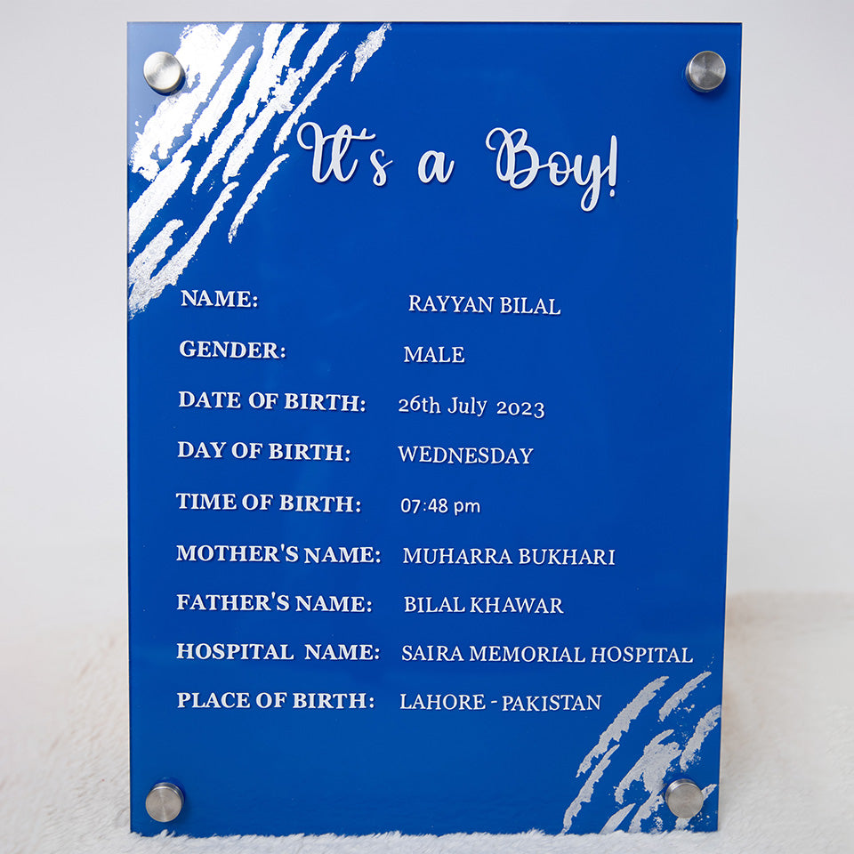 Welcome your little one into the world with The Little Legacy: Birth Facts Plaque. This heartfelt acrylic plaque beautifully commemorates the precious details of your baby's arrival, capturing the magic of that unforgettable day.