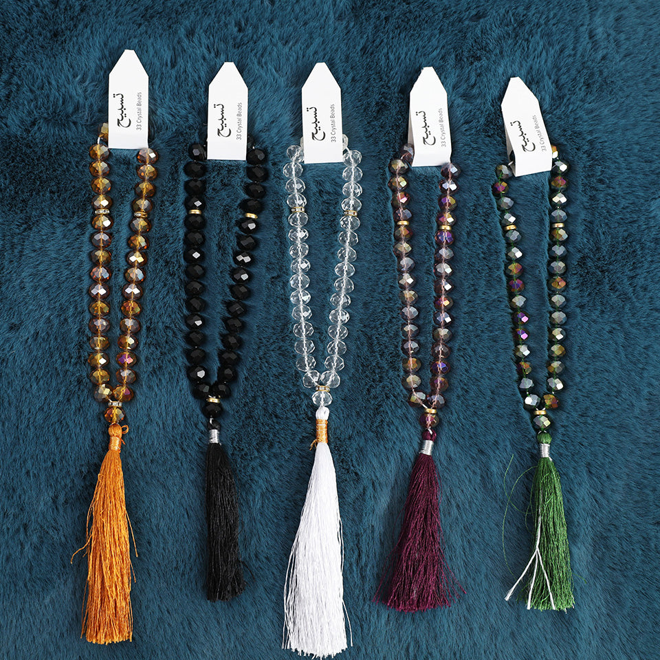 Both options feature a beautiful finish, making them not just functional tools but elegant accessories. Whether for personal use or as a thoughtful gift, these crystal tasbihs embody grace and devotion, guiding you through your moments of reflection. Embrace the beauty of spirituality with our exquisite crystal tasbihs.