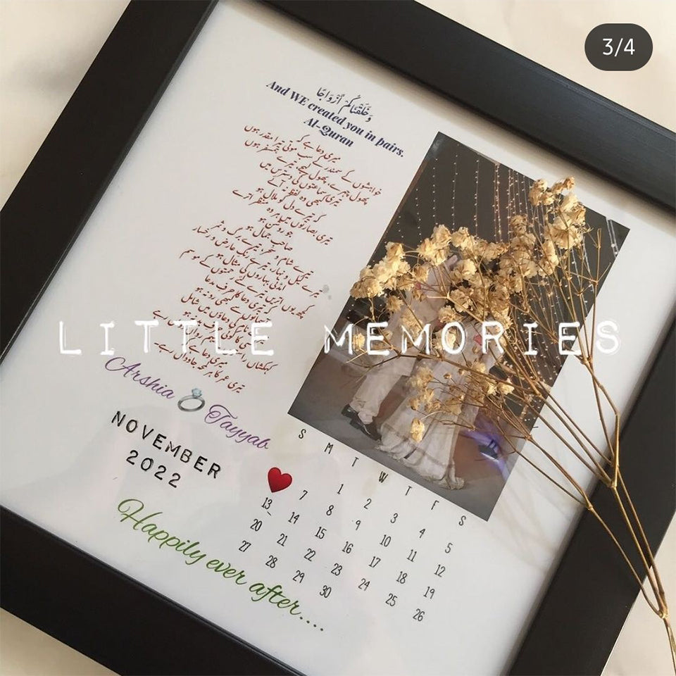 Crafted with meticulous attention to detail, you can personalize the frame with names, dates, and a heartfelt message in either Urdu or English, making it a truly unique gift. Choose from a selection of border options to perfectly complement your decor.