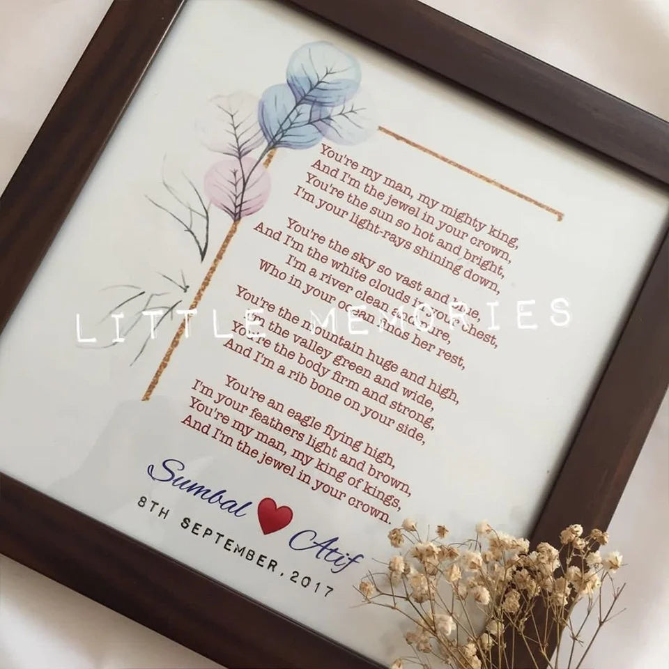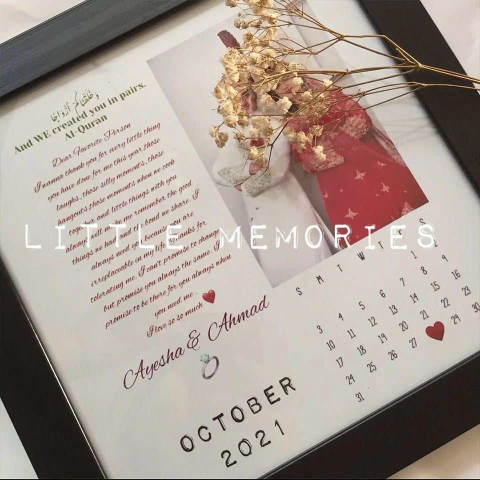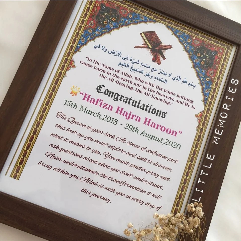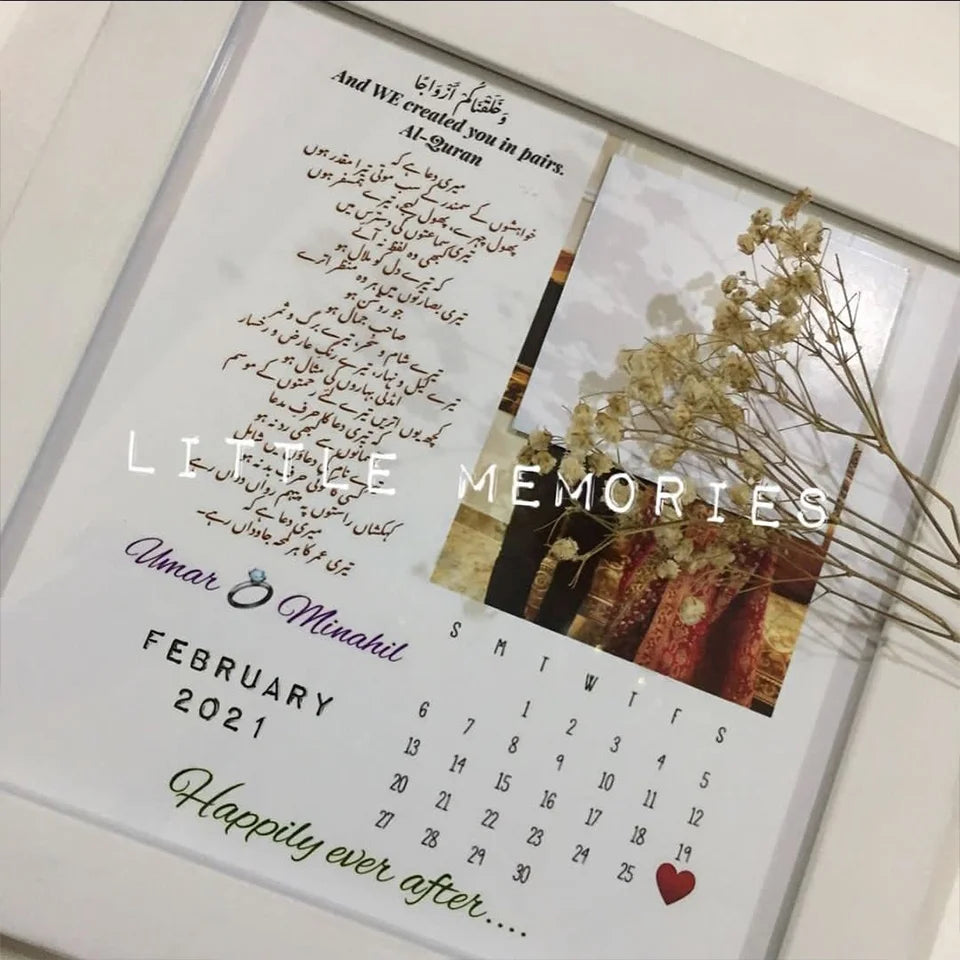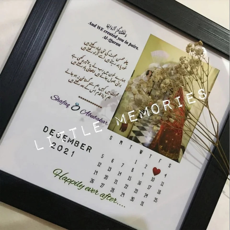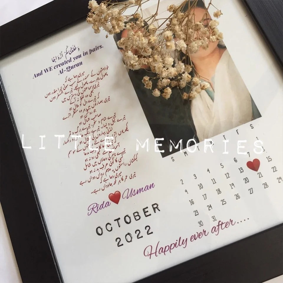 Crafted with meticulous attention to detail, you can personalize the frame with names, dates, and a heartfelt message in either Urdu or English, making it a truly unique gift. Choose from a selection of border options to perfectly complement your decor.