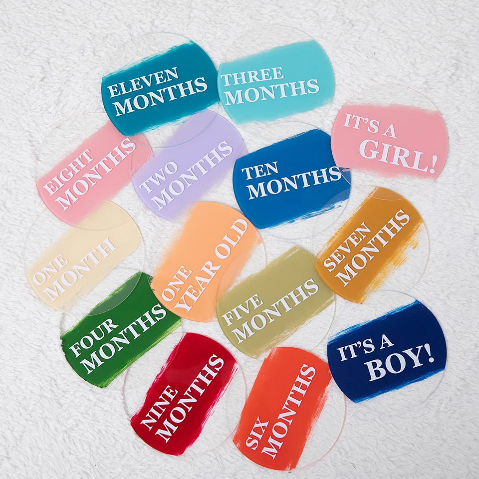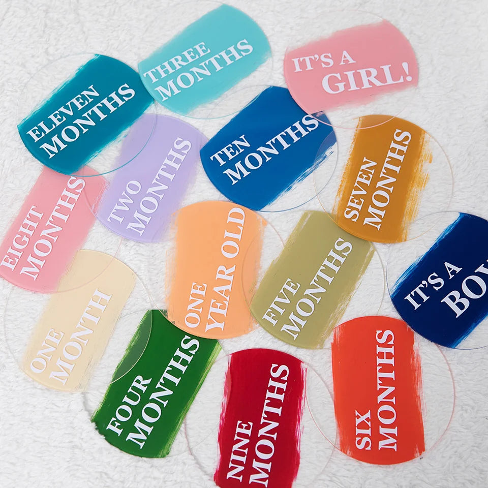 Celebrate your baby's first year with our Palette of Joy Multi-Colors Painted Acrylic Discs. Each vibrant disc features a delightful array of colors, designed to capture the essence of each milestone throughout the year. Perfect for documenting monthly growth and achievements, these discs add a playful and artistic flair to your baby's journey.