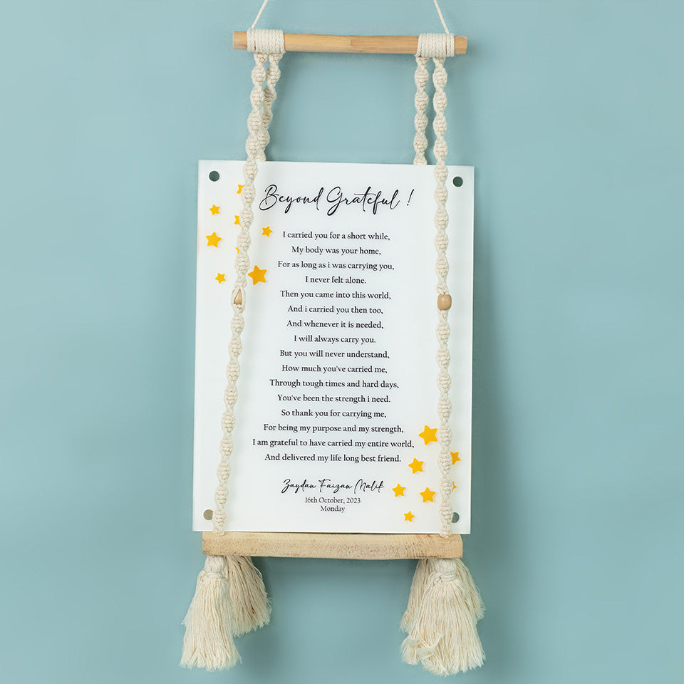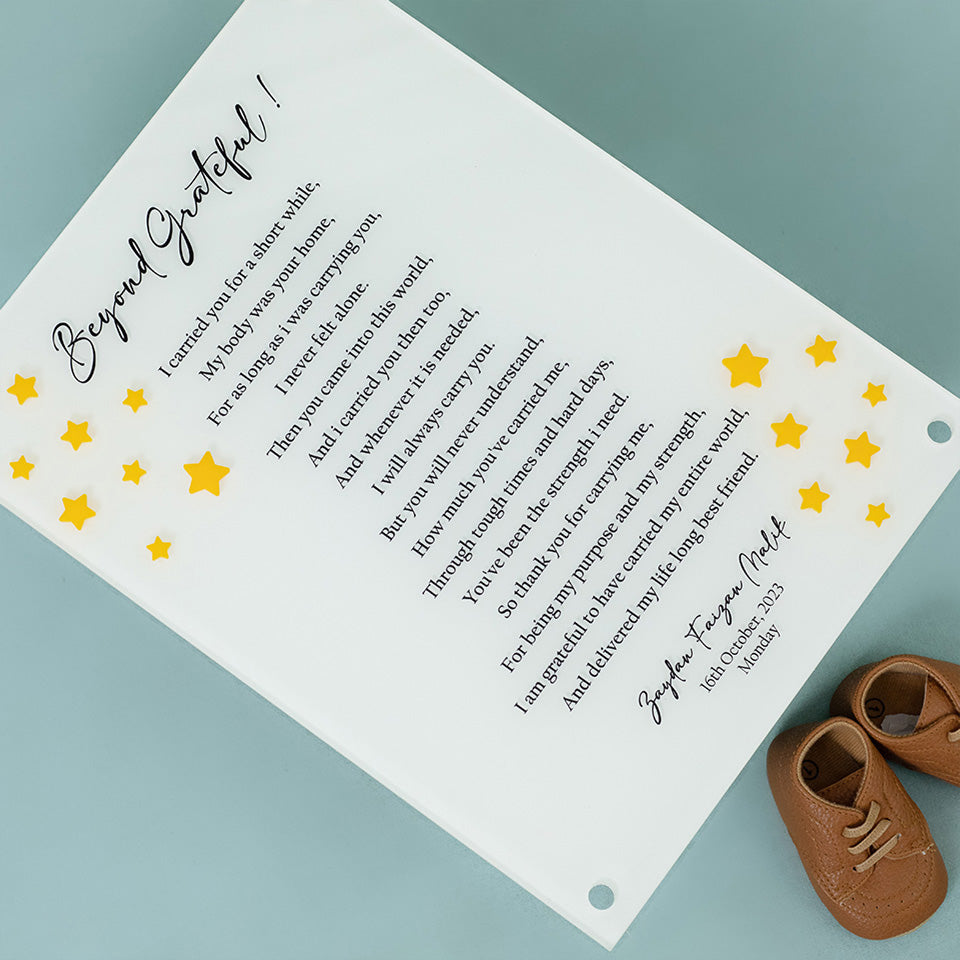 Combining printed and hand-painted elements, this plaque is not just decor; it’s a cherished keepsake that celebrates special milestones in your child's life. Personalize it with your child’s full name, birth date, and a heartfelt message, transforming it into a treasured memory that will last for years to come.
